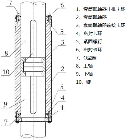 立式冷凝泵一般是采用錐形套筒式聯(lián)軸器,內(nèi)用鍵防止轉(zhuǎn)動(dòng)位移,兩端有一對(duì)正反螺母鎖緊并有止退螺釘,螺母內(nèi)采用哈夫鎖環(huán)將軸與聯(lián)軸器徹底鎖死防止徑向位移。需要注意的是,螺母必須靠緊哈夫鎖環(huán),不能與套筒聯(lián)軸器螺紋以外部位接觸,否則沒(méi)有鎖緊效果。